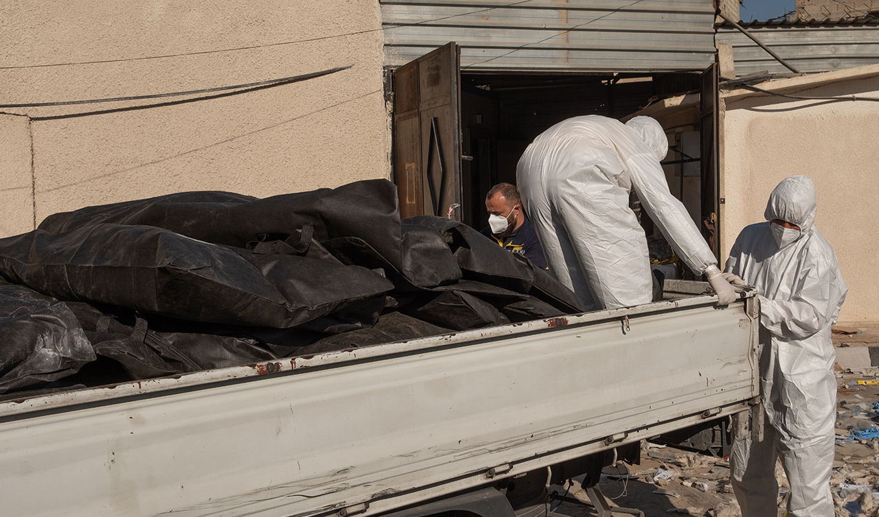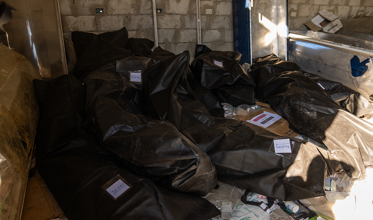 Selmo, "Burası bir ilaç deposu olarak görülüyor ancak içinde soğuk hava deposu bulduk. Deponun çürümüş cesetlerin ve iskeletlerin saklandığı bir alana dönüştüğünü gördük. Ekiplerimiz cesetleri belgelemeye çalışıyor. İskeletleri toplayıp kurbanların sayısını belirlemeye çalışıyoruz." dedi.