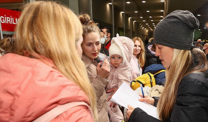 Rusya'nın ülkelerine saldırması sonrası evlerini terk edip Moldova'ya sığınan Ukraynalı kadın ve çocuklar, Kuşadası'na gitmek üzere uçakla İzmir'e geldi.