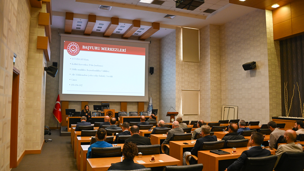 Selçuklu Belediyesi tarafından birim müdürlerine kadına yönelik şiddetle mücadele konusunda farkındalık oluşturmak amacıyla eğitim semineri düzenlendi. Konya Aile ve Sosyal Hizmetler İl Müdürlüğü’ne bağlı Konya Şiddet Önleme ve İzleme Merkezi Müdürlüğü’nde görevli Sosyal Çalışmacı Sümeyya Karakaplan ve Sosyal Çalışmacı Mine Arıcı Yıldırım tarafından Selçuklu Belediyesi yöneticilerine “Kadına Yönelik Şiddet, Erken Yaşta Evlilik ve Zorla Evlilik” konuları ile ilgili bilgilendirmeler yapıldı.