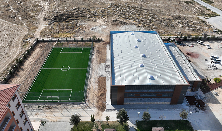 4 farklı spor branşında (basketbol, hentbol, voleybol ve futbol) faaliyet gösterebilecek kapalı spor salonunda soyunma odaları, öğretmenler odası, teknik alanlar ve diğer kullanım alanları yer alıyor. Ayrıca kapalı spor salonunun yan tarafında standart ölçülerde suni çim saha bulunuyor.