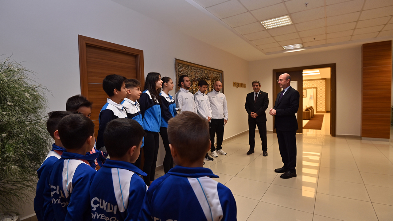 Ziyarette, Kulüpler Cimnastik Türkiye Şampiyonası’nda Büyükler Trambolin kategorisinde Türkiye ikincisi olan Selçuklu Belediyespor Kulübü Cimnastik Takımı sporcuları Elif Ceren Çolak ile Hatice Elif Buğdaycı, Artistik Cimnastik Kulüpler Türkiye Şampiyonası Minik Erkekler kategorisinde Türkiye üçüncüsü olan minik sporcular yer aldı.(Yunus Köroğlu)