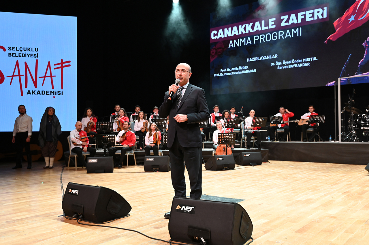 Selçuklu Kongre Merkezi'nde gerçekleştirilen 18 Mart Çanakkale Zaferi Anma Programı, Selçuklu Belediyesi Sanat Akademisi ve Necmettin Erbakan Üniversitesi Eğitim Fakültesi Müzik Öğretmenliği Bölümü paydaşlığında düzenlendi. Etkinlikte, “Zahid Bizi Tan Eyleme, Çanakkale İçinde, Tuna Nehri Akmam Diyor, Gitme Yemene, Sakarya, Şerife Bacı, Sarı Zeybek, Karacaoğlan, Vay Memet, Biz” adlı eserler icra edildi.