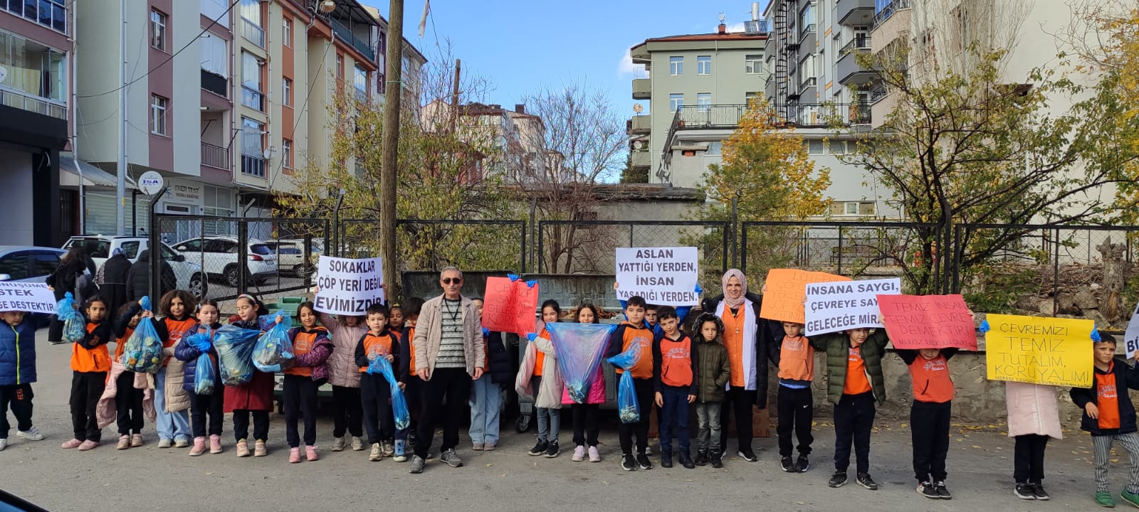 Ellerinde dövizlerle slogan atarak yürüyen ve çevre temizliği yapan öğrencileri gören vatandaşlar alkışlayarak destek verdi.
