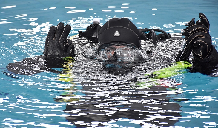 Su altında delil ararken "Her temas iz bırakır" prensibiyle hareket eden tim, belirli periyotlarla su altında eğitim ve tatbikat yaparak 7/24 göreve hazır bekliyor.