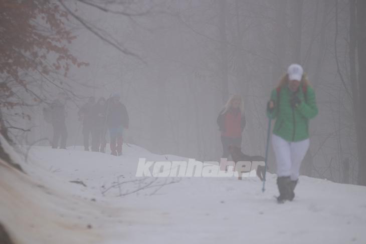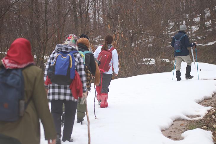 Zaman zaman karın 15 santimetre kalınlığa ulaştığı bölgeden geçen, yoğun sis altında yürüyen gezginler, buz gibi suların ve muhteşem doğal güzelliklerin olduğu parkuru 7 saatlik zorlu yolculuk sonrası tamamladı.