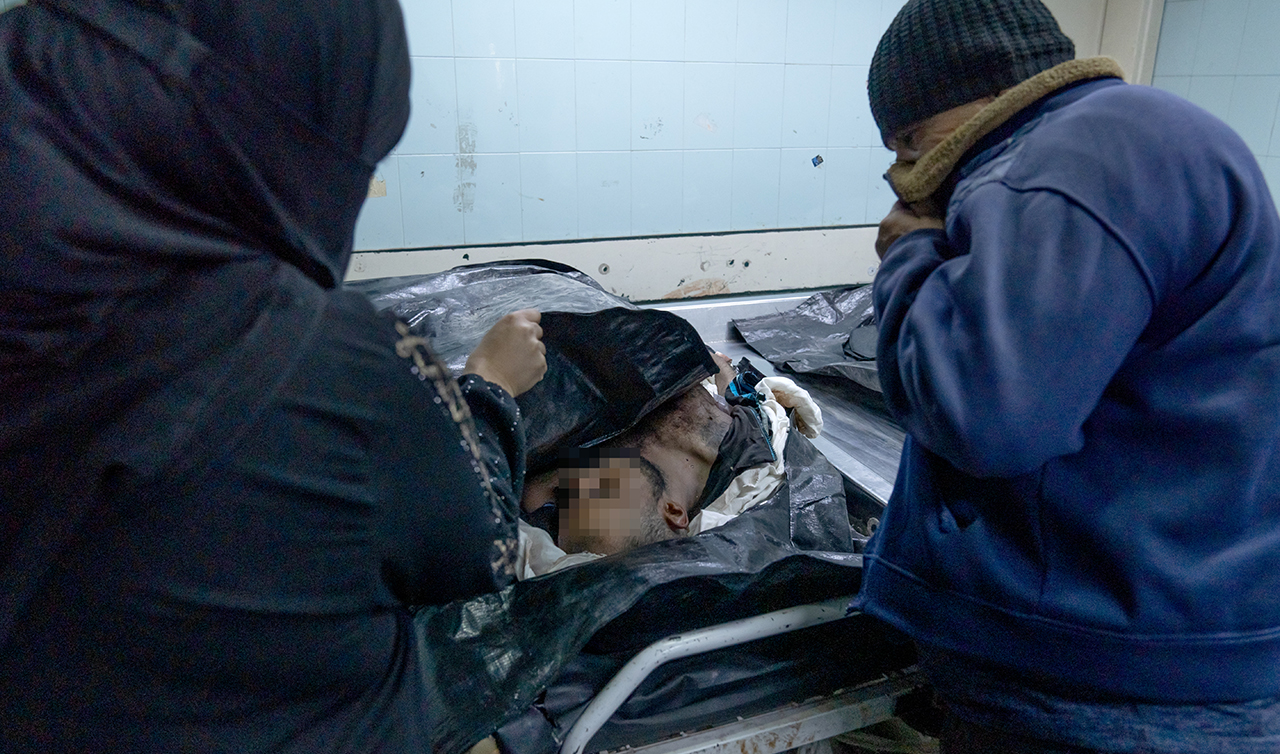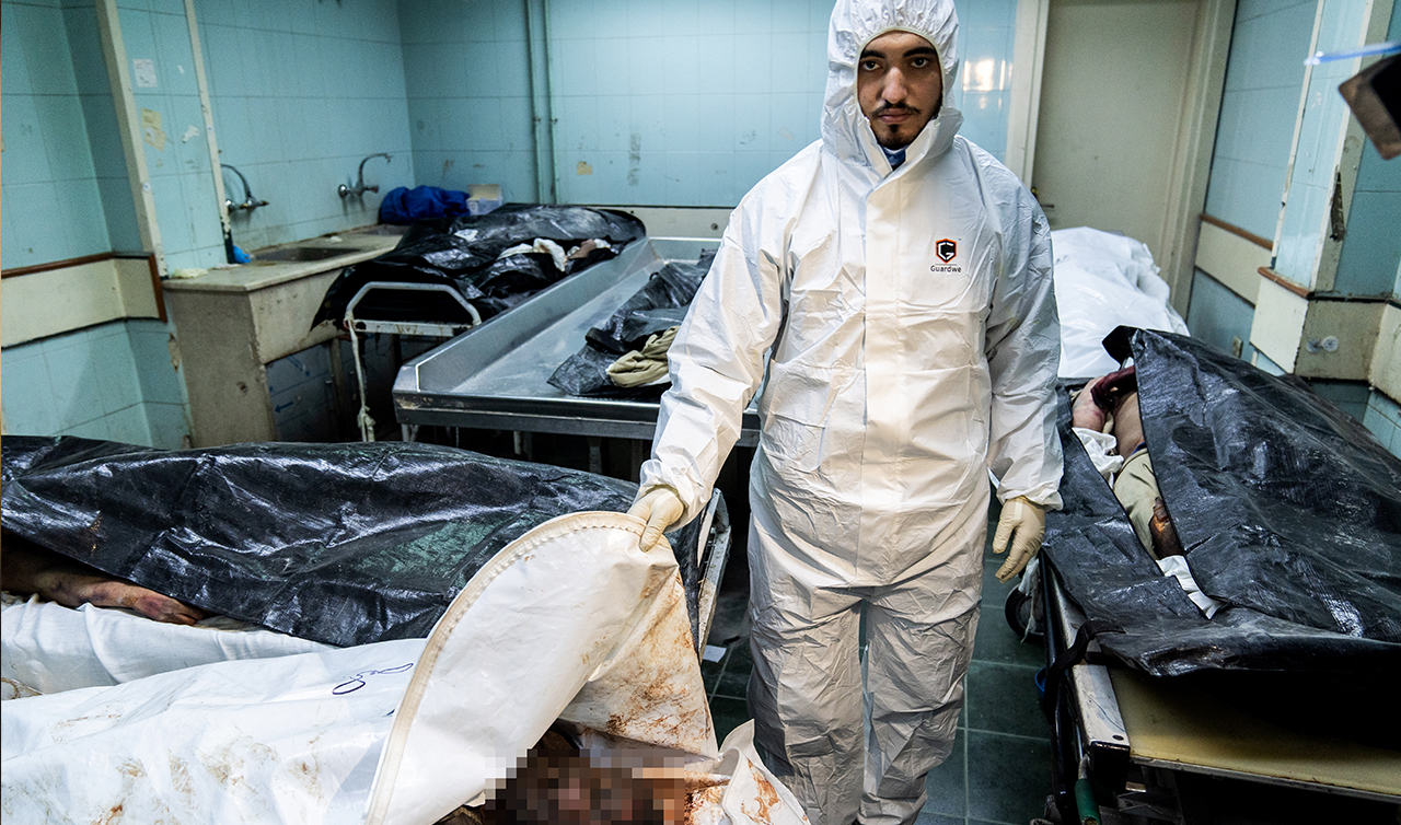 Harasta Askeri Hastanesi morgunda torbalara istiflenmiş ve işkence izleri taşıyan yaklaşık 40 ceset, otopsi işlemleri için El Müctehid Hastanesi’ne taşındı.