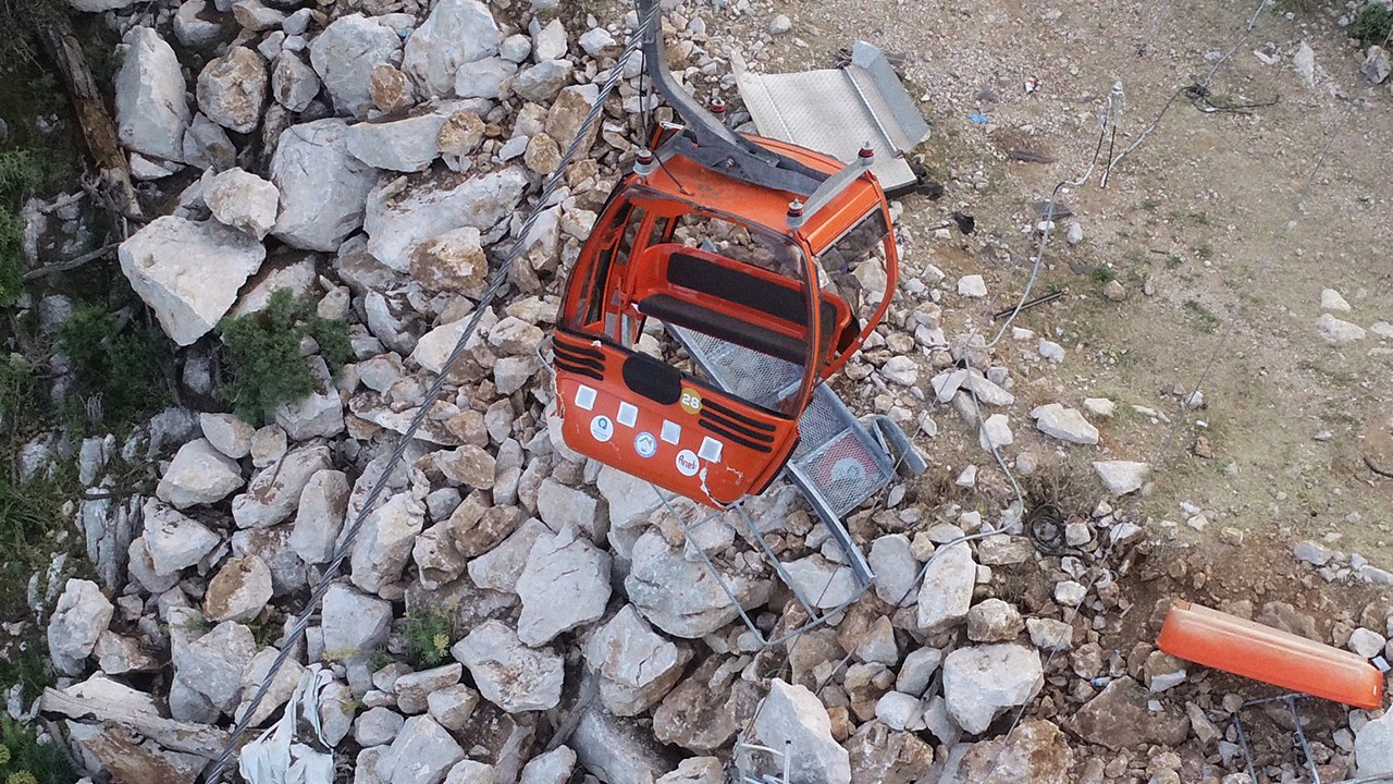 Ortadan ayrılan direk, direğin parçası, kopan direk parçasının zarar verdiği teleferik kabini görüntülere yansıdı. Direğin çarpması sonucu kabinden kopan parçalar ve tellerin etrafa dağıldığı görüldü.Yetkililer dışında bölgeye girişin izin verilmediği alanda polis ekipleri önlemlerini sürdürüyor.