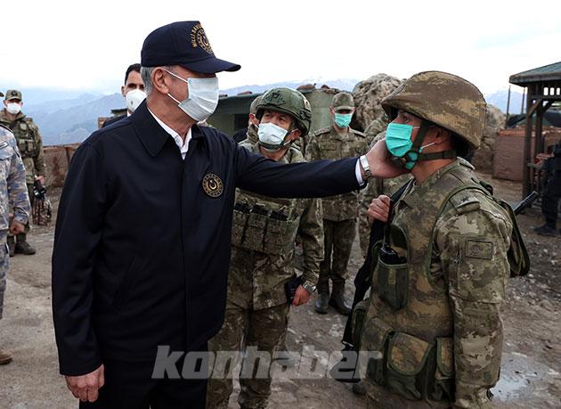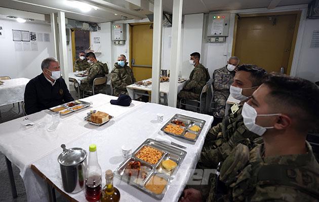 Sizin burada yaptığınız operasyonların başarılı olması için bir taraftan eğitimlerimiz, atış faaliyetlerimiz, tatbikatlarımız devam ederken, diğer taraftan da elinizdeki silahların, araç ve gereçlerin en üstün teknolojiye sahip olması için de gece gündüz çalışıyoruz. Sayın Cumhurbaşkanımızın liderliği, teşviki ve desteğiyle yerli ve milli savunma sanayi hamlesiyle elimizdeki silahların, araç ve gereçlerin yüzde 70'i yerli ve milli oldu. İnşallah bu çalışmalar yoğun bir şekilde devam edecek ve çok daha ileri seviyelere gidecek, bütün silahlarımız, araç ve gereçlerimiz yerli ve milli olacak."