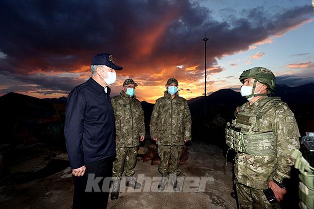 Bakan Akar, beraberinde Genelkurmay Başkanı Orgeneral Yaşar Güler, Kara Kuvvetleri Komutanı Orgeneral Ümit Dündar ile 2'nci Hudut Bölük Komutanlığının Irak'ın kuzeyindeki Biliç Tepe Üs Bölgesi'ni ziyaret etti.
