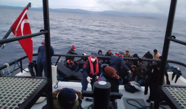 İzmir açıklarında, Yunanistan unsurlarınca Türk kara sularına itilen 40 düzensiz göçmen kurtarıldı.