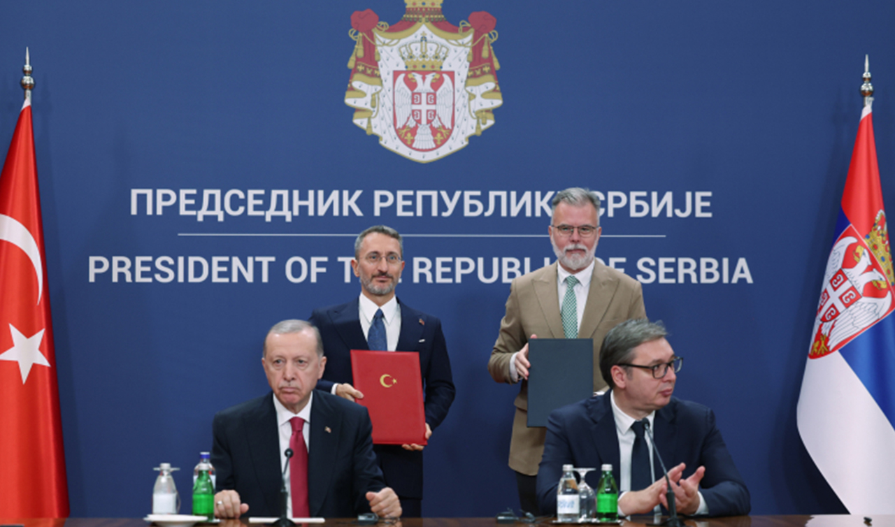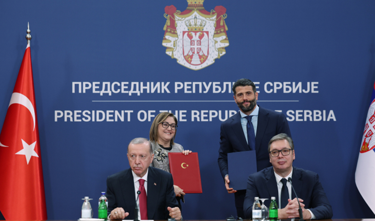 Cumhurbaşkanı Recep Tayyip Erdoğan ile Sırbistan Cumhurbaşkanı Aleksandar Vucic'in huzurunda, Sırbistan Cumhurbaşkanlığı Sarayı'nda iş birliği anlaşmalarının imza töreni gerçekleştirildi.