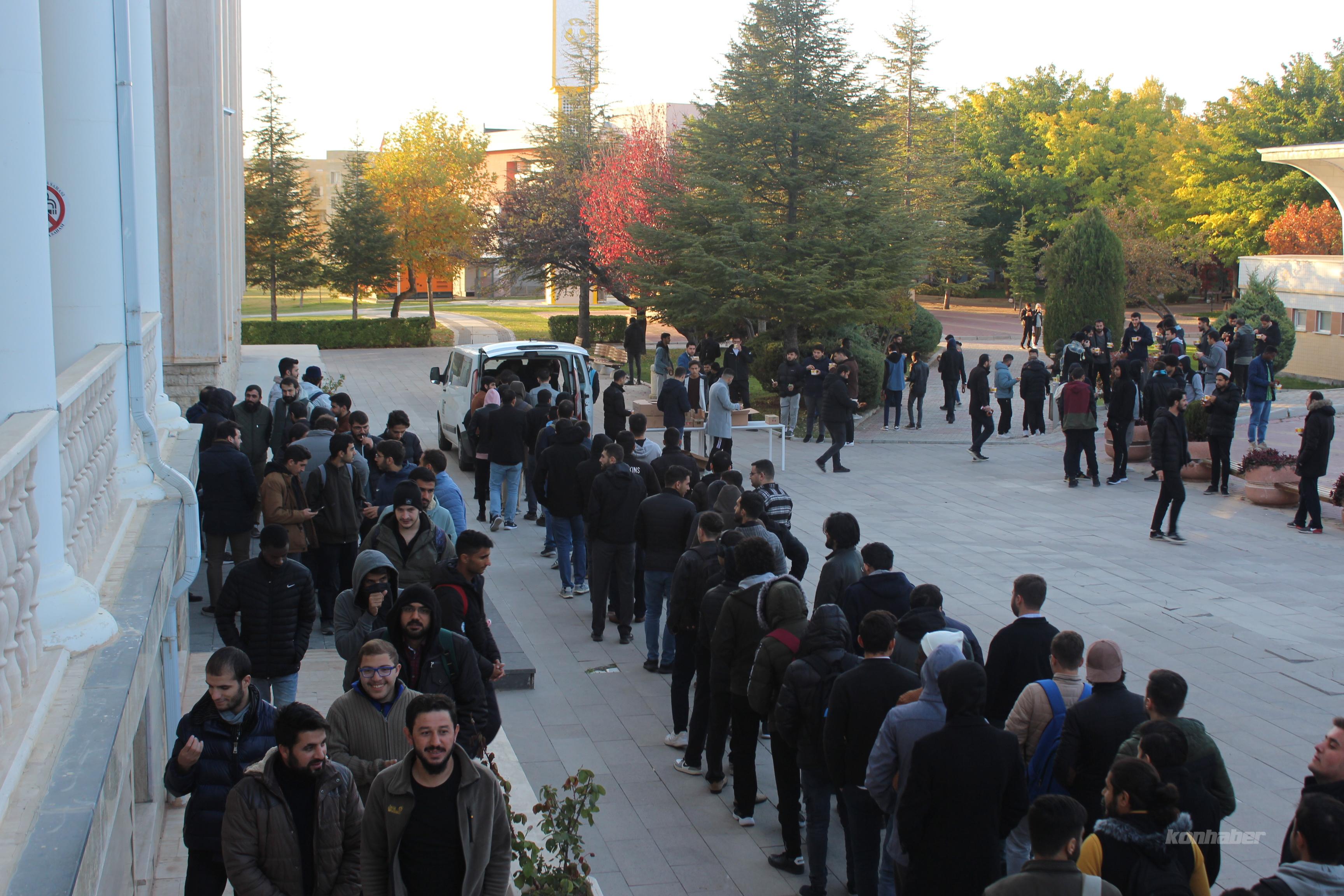 Konya’daki üniversite öğrencileri, sabah namazında bir araya geldi. Namaz sonrası öğrencilere çorba ve simit ikramı yapıldı.