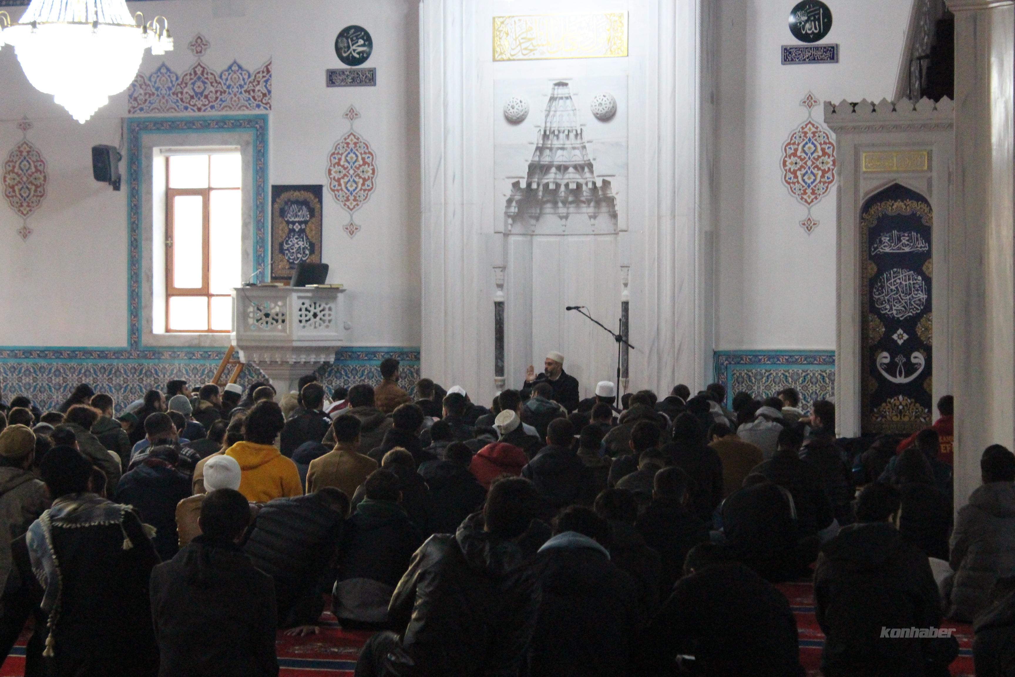 Kampüs Camiinde buluşan gençler, cemaatle kılınan namazın ardından Selçuk Üniversitesi İslami İlimler Fakültesi Öğretim Üyesi Hüseyin Gökalp’in yaptığı konuşmayı dinledi.