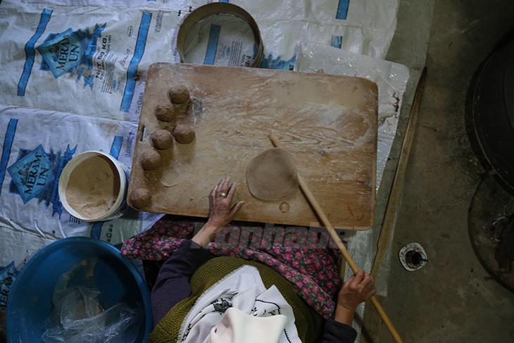Konya'nın Orta Toroslardaki Hadim ilçesinde yaşayan 58 yaşındaki Meryem Sevinç, yaban armutlarını kurutarak elde ettiği unla yufka ekmek yapıyor.