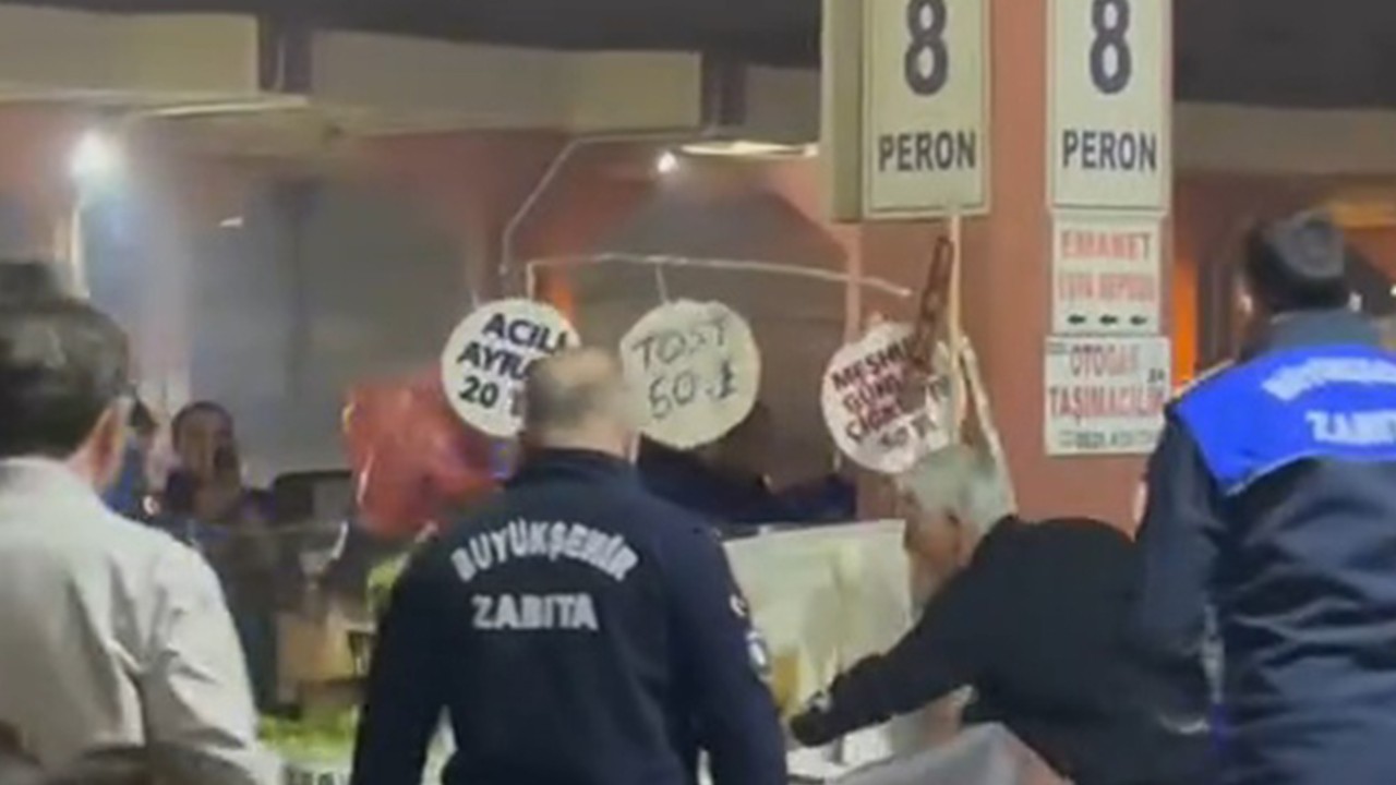 Polis ekibinin Aslan'ı kontrol altına alıp, uzaklaştırmasının ardından zabıta, tezgahı kamyonete yükleyerek bölgeden götürdü.