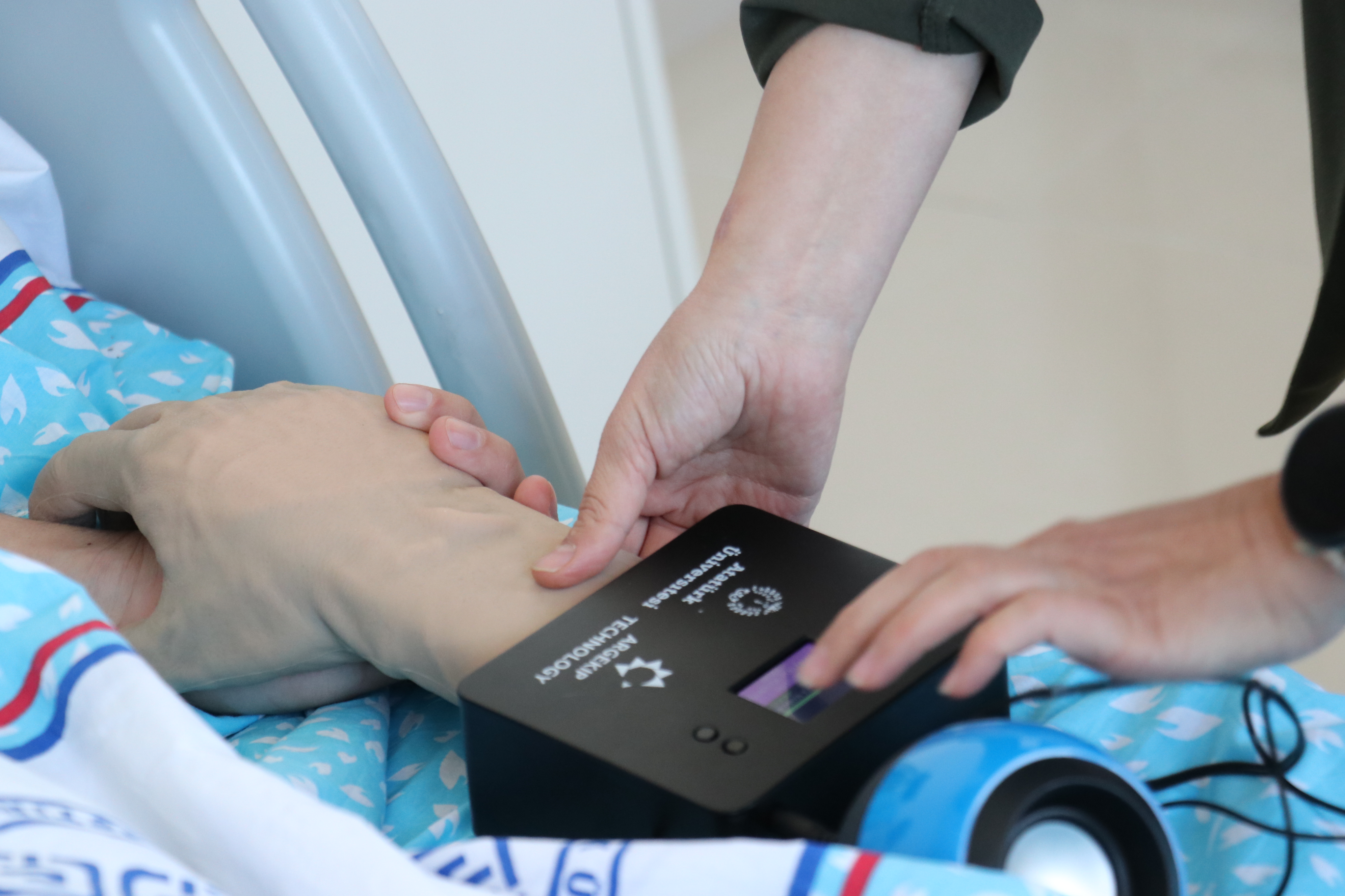 İnsan eli hissiyatının yanında yoğun bakımda, yakınlarından uzakta tedavi süreçleri devam eden hastalara olumlu etki yaratması için hazırlanan cihaza hasta yakınlarının veya müzik, Kur'an-ı Kerim gibi istenilen sesler de ekleniyor.Özel bir maddeden yapılan el şeklinde cihaz, yatan hastanın elinin üzerine konularak zaman zaman sıkma refleksleri gerçekleştiriyor.