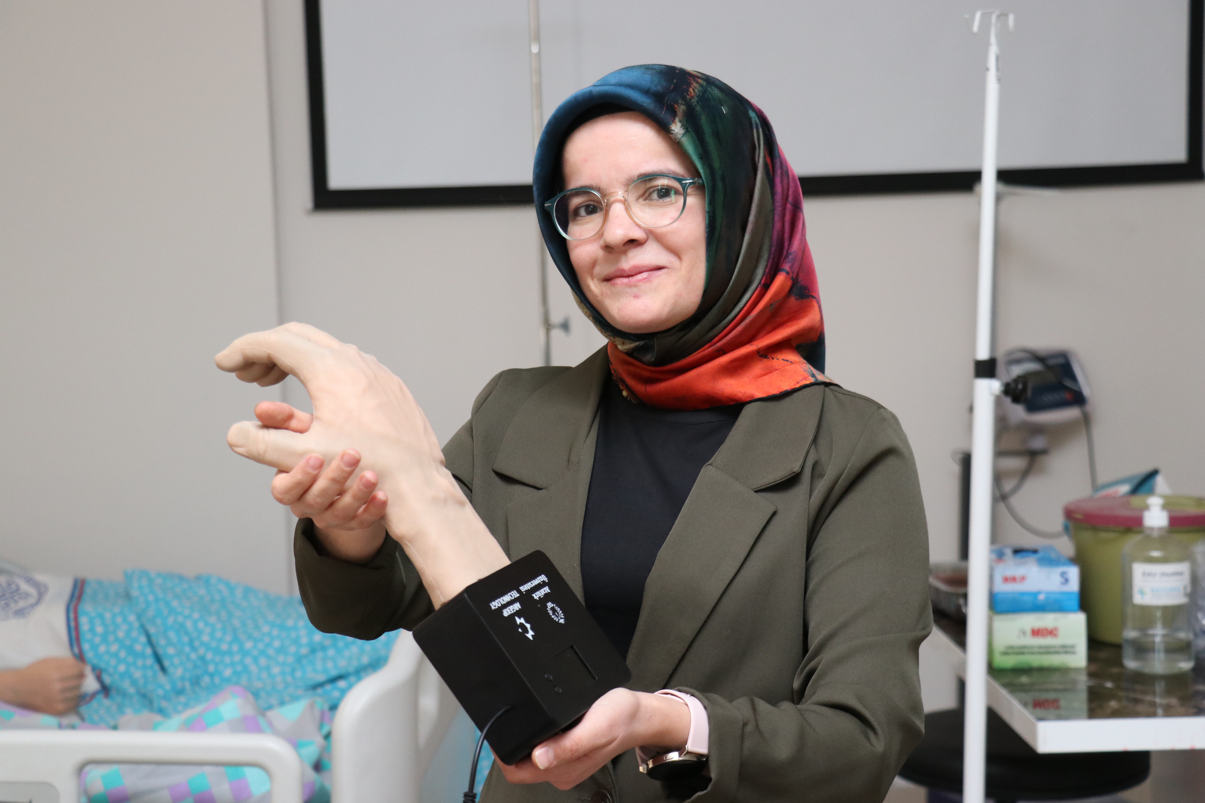 Atatürk Üniversitesi Hemşirelik Fakültesi Öğretim Üyesi Doç. Dr. Bahar Çiftçi, Prof. Dr. Gülçin Avşar ve Doç. Dr. Arzu Sarıalioğlu ile Mühendislik Fakültesi Bilgisayar Mühendisliği Bölümünden Dr. Öğr. Üyesi Ahmet Coşkunçay'ın desteğiyle 1 yıllık çalışmanın ardından, yoğun bakım hastalarının tedavi sürecine yardımcı olmak için el şeklindeki "Terapotik Dokunmatik" cihazını hayata geçirdi.