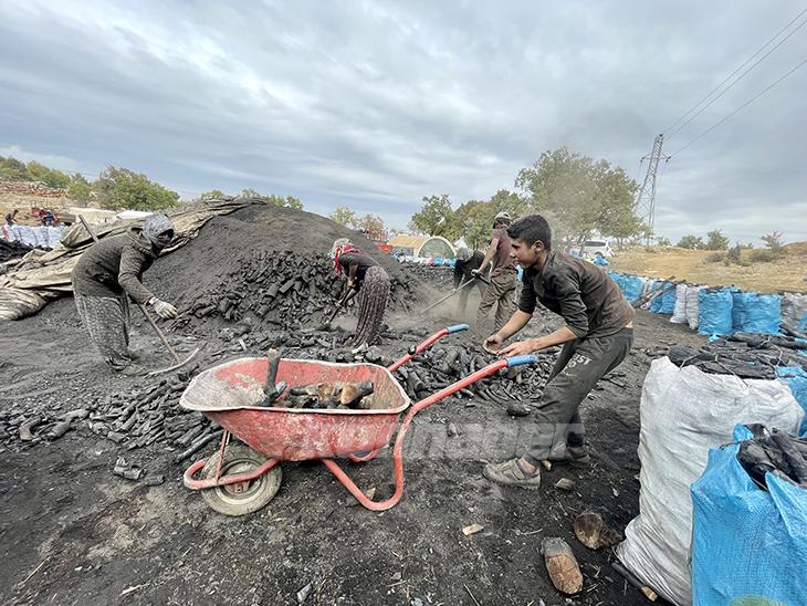 İki ay toplama alanında odunları biriktiren aile, üzerini toprakla kapattıkları odunları, yaklaşık 25 gün boyunca gece gündüz nöbetleşe çalışarak yakıyor. Yaklaşık 6 ay süren bu meşakkatli süreçte son olarak kömürler paketleniyor.