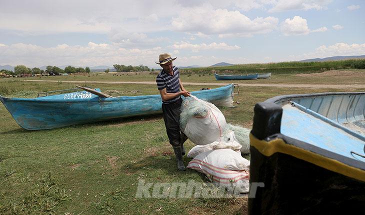 "Vira bismillah" diyerek göle ağ sermeye başlayan balıkçılar, levrek, sazan balıklarıyla tezgahları süslemek istiyor.