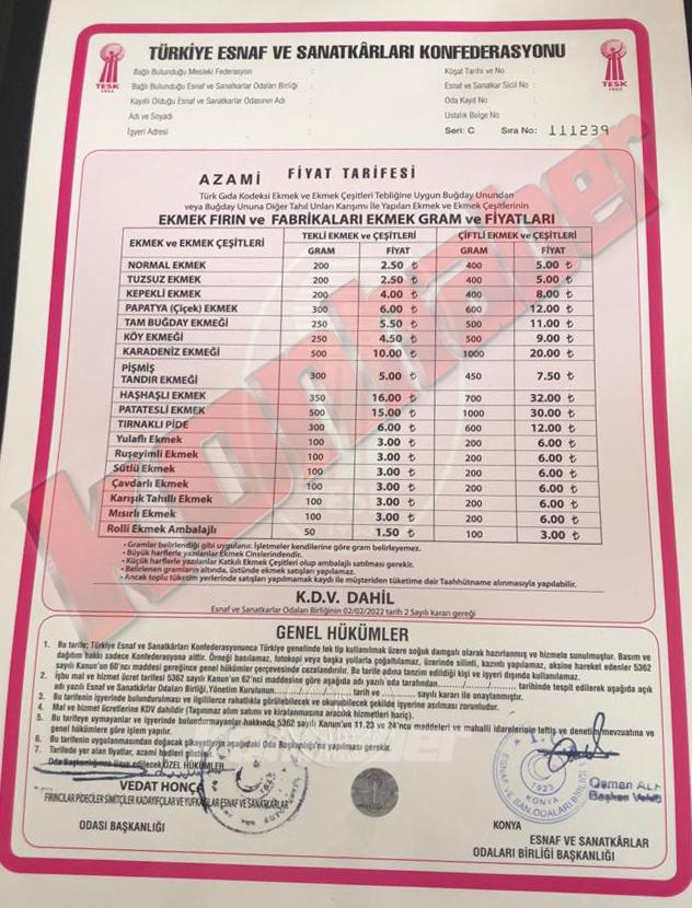 Konya’da akaryakıt, nakliye, elektrik ve doğalgaza gelen zamlarla birlikte artan maliyetlerden ve girdilerden dolayı ekmek ve ekmek çeşitlerinde yeniden bir fiyat artışına gidildiği ve 200 gram ekmek fiyatının 2.50 liradan satılacağı duyurulmuş ancak esnaflar arasında rekabete yol açtığından dolayı bu zam ertelenmişti.