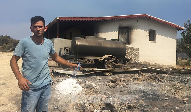 İlçenin Belenobası Mahallesi'nde besicilik yapan Ufuk Dinç, karşı tepeden bir saat içinde gelen yangının evini ve hayvanlarının barınağını sardığını söyledi.