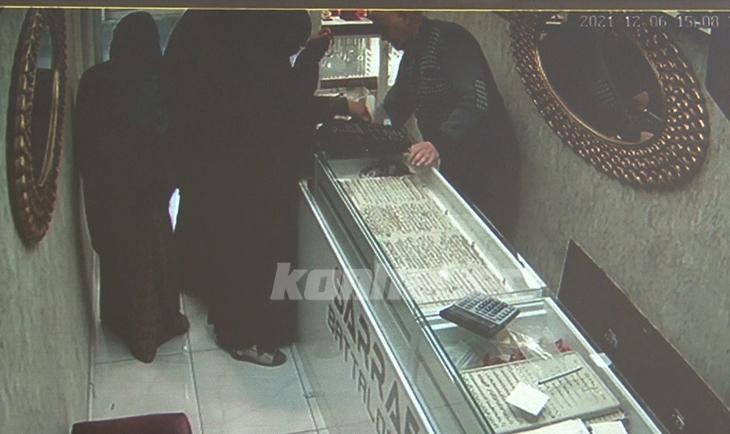 Daha sonra 50 lira değerinde bileklik alan 3 şüpheli kadın, iş yerinden çıkarak uzaklaştı. Şüphelilerin gitmesinden yaklaşık 20 dakika sonra pırlantaların yerinde olmadığını fark eden iş yeri sahibi, güvenlik kamerası görüntülerini incelediğinde hırsızlık olayını gördü. Güvenlik kamerası görüntülerinde, kadınlardan birinin iş yeri sahibini oyaladığı, diğer kadınların da tezgahtaki pırlantaları alıp şalvarının içine sakladığı görülüyor.