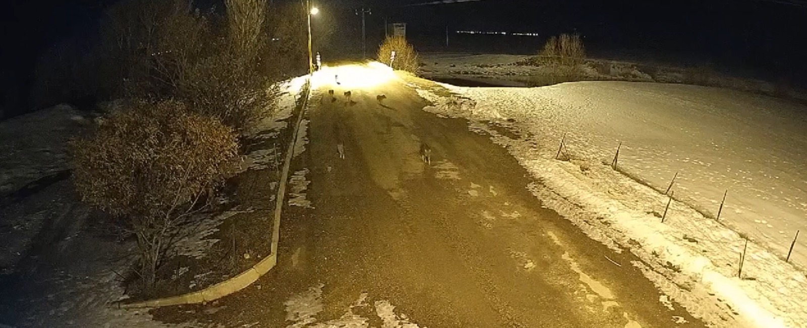 Merkez ilçeye bağlı Çayıryolu köyüne inen kurtların sürü halinde dolaşıp, yiyecek aradığı anlar, çevredeki güvenlik kamerasıyla görüntülendi. Görüntülerde; kurtların sürü olarak geldiği köyde dolaştığı, daha sonra da ormana girip kaybolduğu yer alıyor.