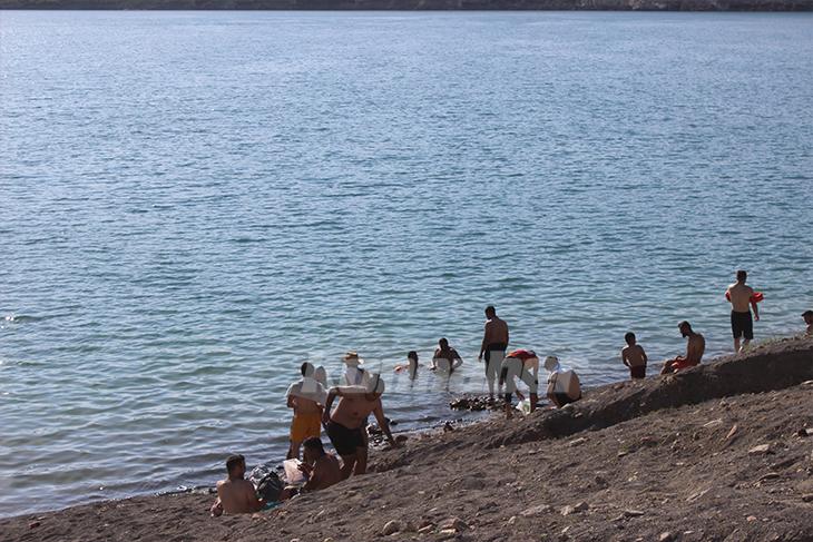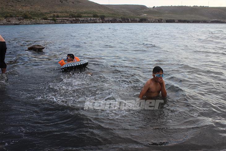 Göle yakın il ve ilçelerden gelen çok sayıda ziyaretçi, sıcak havada gölün soğuk sularında önce yüzüp, ardından piknik yapıp, mangal yaktı.