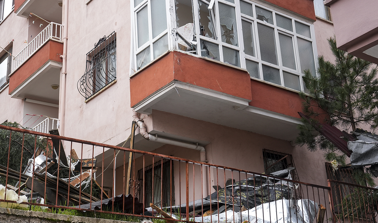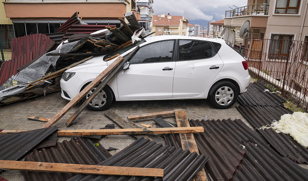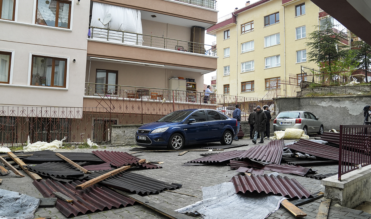 Keçiören Bademlik Mahallesi 1162. Sokak'ta fırtınanın etkisiyle bir apartmanın çatısı uçtu, etrafa saçılan malzemeler, park halindeki 4 otomobilde hasara neden oldu. İtfaiye ekipleri, çatılardan etrafa yayılan tuğla parçaları ile çanak antenleri topladı.