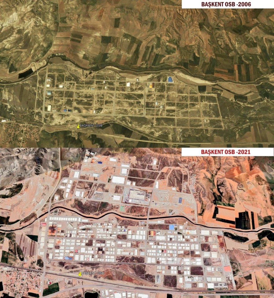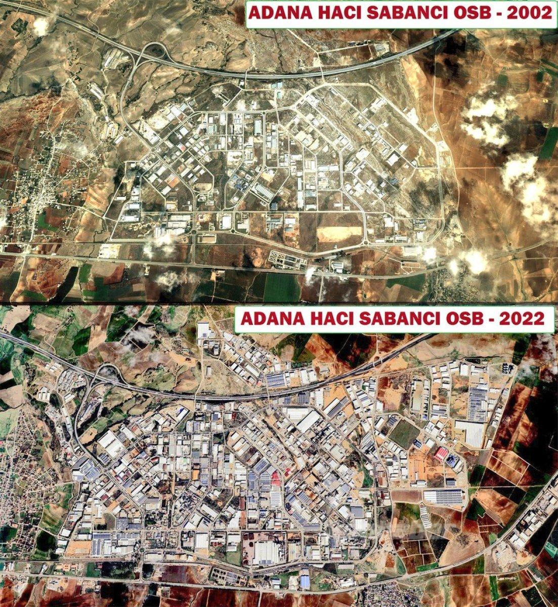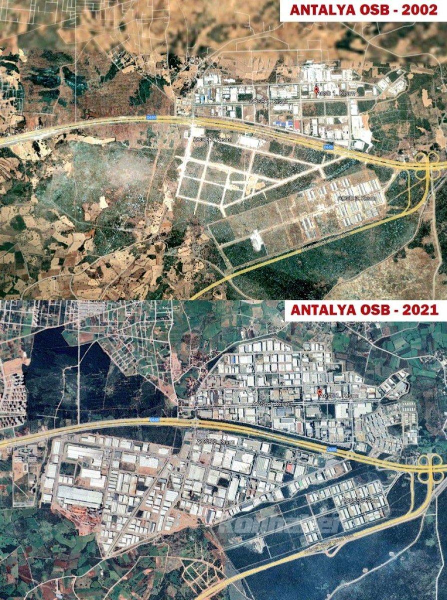 Bu iddialara, en yetkili isim Sanayi ve Teknoloji Bakanı Mustafa Varank'tan cevap geldi. Mustafa Varank, Antalya, Ankara ve Adana'daki organize sanayi bölgelerinin öncesi ve sonrasını paylaştı. 3 şehirde kurulan organize sanayi bölgelerinin, illerin çehresini nasıl değiştirdiğine en büyük örnek olan paylaşımlar kısa sürede binlerce beğeni aldı.