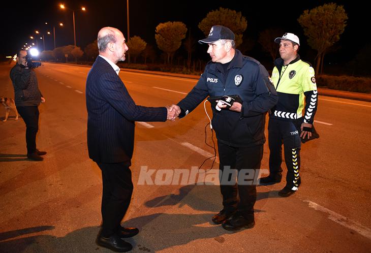 Başkan Pekyatırmacı emniyet kontrol noktasında polis ekiplerinin güvenlik kontrolü için durdurduğu vatandaşlara da hayırlı yolculuklar dileyerek trafik kurallarına uymaları temennisinde bulundu.