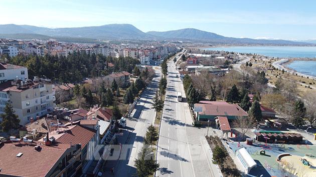 Beyşehir'de hafta sonu getirilen sokağa çıkma kısıtlamasında göl çevresi yerini sessizliğe bıraktı.