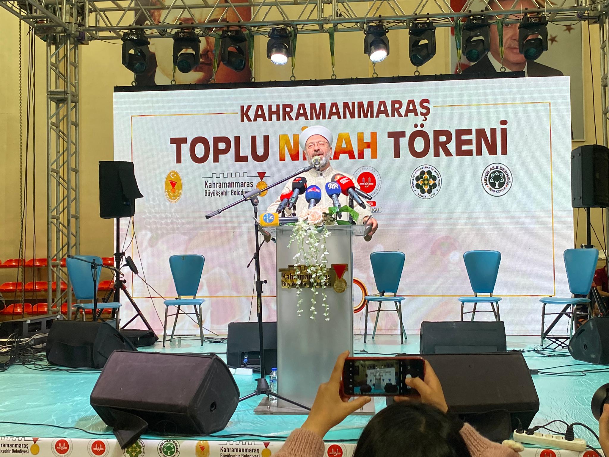 Programa Diyanet İşler Başkanı Prof. Dr. Ali Erbaş, Ak Parti Kahramanmaraş Milletvekili Prof. Dr. Vahit Kirişçi, Kahramanmaraş Valisi Mükerrem Ünlüer, Kahramanmaraş Büyükşehir Belediye Başkanı Fırat Görgel Konya İl Müftüsü Prof. Dr. Ali Öge, Kahramanmaraş İl Müftüsü Abdurrahman Kotan, Mehir Vakfı Mütevelli Heyeti Başkanı Mustafa Özdemir, Mehir Aile Derneği Başkanı Abdurrahman Tekin ve Mehir Vahfı Mütevelli Heyeti Başkan Vekili Prof. Dr. Saffet Köse’nin yanısıra çiftlerin aileleri ve çok sayıda vatandaş katıldı. Kuran-ı Kerim tilavetiyle başlayan program konuşmacıların hitabetiyle devam etti.