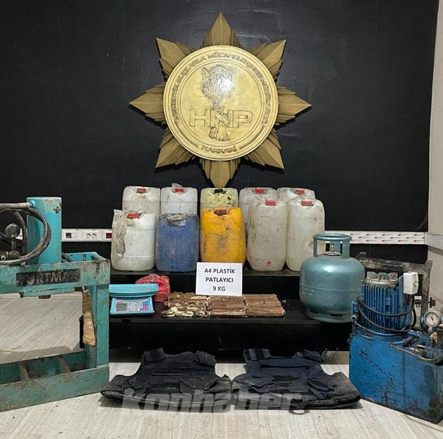 Hakkari'nin Yüksekova ilçesinde gerçekleştirilen operasyonunda, 9 kilo 200 gram A-4 plastik patlayıcı ile 426 litre asetik anhidrit ele geçirildi.
