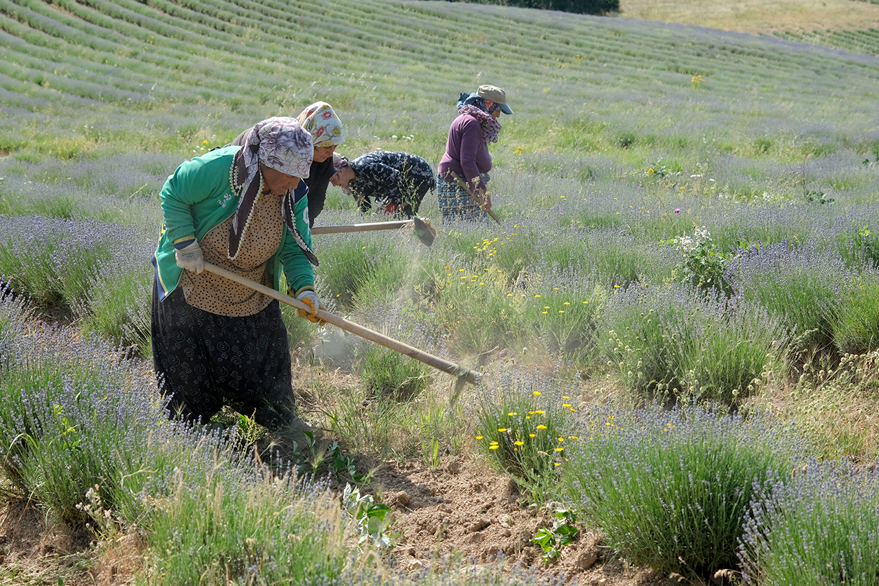 Kentte 2 bin 700 dönüm alanda ekilen lavanta tarlalarında turizm sezonu öncesi hummalı bir çalışma var. Demircihalil köyünde 55 dönümde lavanta yetiştiriciliği yapan Seyit Ali Güner, tarlasını turizm sezonuna hazırladığını söyledi.