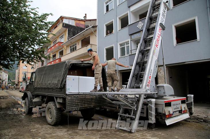 Ev taşıma faaliyetlerinin sürdüğünü aktaran Avkıran, "Bunlardan biri de ev taşıma faaliyetleri. Mülki görevler kapsamında halkımıza yardım etmek zaten bizim görevimiz. Personelimiz bunu canıgönülden yerine getirmektedir. Gördüğünüz gibi ev taşıma faaliyetleri de vatandaşlarımızın isteği üzerine icra edilmektedir. Hem şehirler arası hem şehir içi evleri askeri arazili araçlarımızla, askeri personelimizle taşımaktayız. Şu ana kadar 280 taşıma gerçekleştirdik. Talepleri alma ve taşıma faaliyetlerine devam ediyoruz." diye konuştu.Eşyası taşınan vatandaşlardan Ökkeş Yılmazer ise büyük bir felaket yaşadıklarını ifade ederek, şöyle konuştu: "Allah kimsenin başına vermesin. Biz canımızı zor kurtardık. Eşyalarımızı şu anda taşıyoruz. Devletimizden, milletimizden, jandarmamızdan Allah razı olsun. Çok şükür bize bir şey olmadı ama eşyalarımız zarar gördü. Allah'a şükür devletimiz milletimiz sayesinde yavaş yavaş ayağa kalkmaktayız. Jandarmamızdan Allah razı olsun. Bir telefon ettik bizi kırmadılar hemen geldiler. Eşyalarımız gayet güzel şekilde taşınıyor. Hiç mağdur edilmedik, sağ olsunlar."