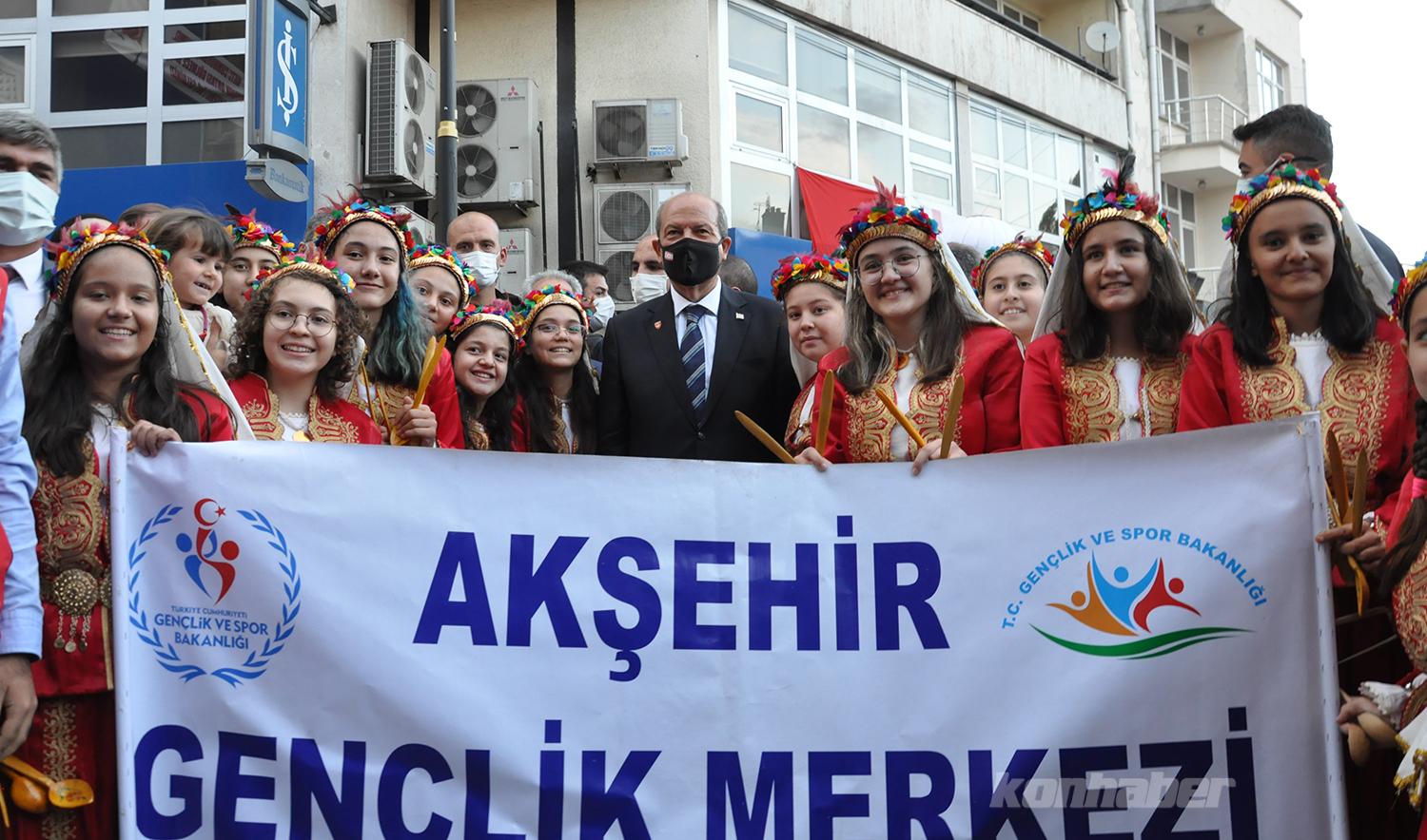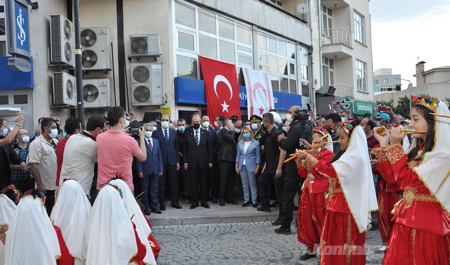 Mehteran eşliğinde yapılan karşılamada konuşan Cumhurbaşkanı Tatar, 1571 yılında Osmanlının Kıbrıs'ı fethi sonrası adanın Türkleştirilmesi için Kıbrıs'a Akşehir'den çok sayıda vatandaşını gönderdiğini anımsatarak atalarının topraklarında olmaktan duyduğu memnuniyeti dile getirdi.