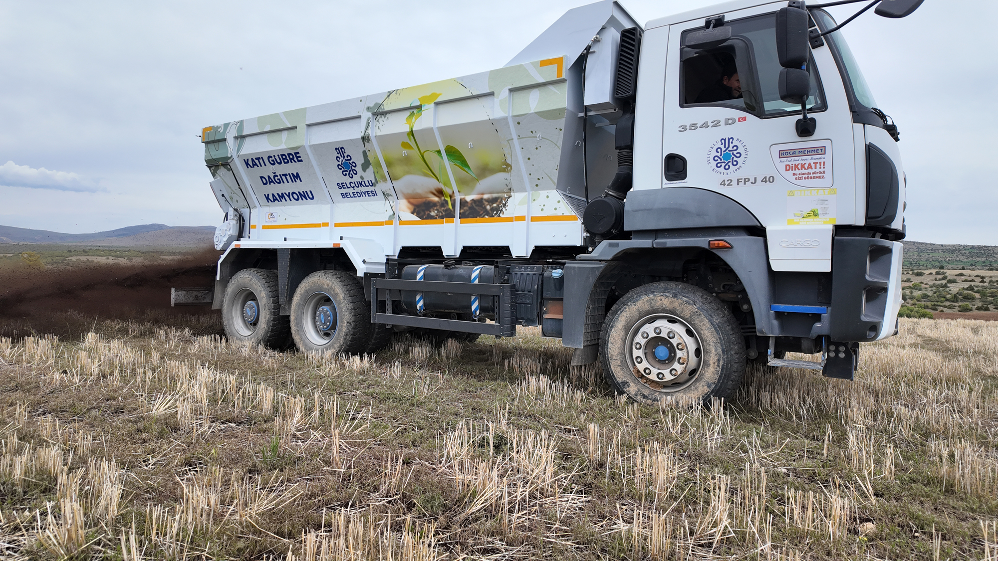 Tarımsal üretime sağladığı desteklerle üretimin ve çiftçinin destekçisi olan Selçuklu Belediyesi, “Kamyon Üzeri Gübre Dağıtım Makinesi” ile üreticiye bir kolaylık daha sağlayacak. Bu uygulamayla üretim verimi artarken tarlalar organik gübreyle buluşacak.
