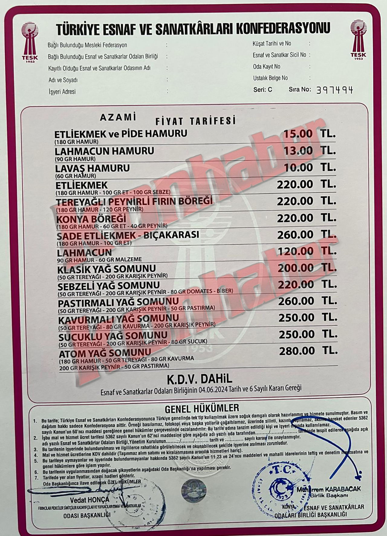 Bundan böyle Konyanın meşhur etli ekmeği sonu gelmiştir.