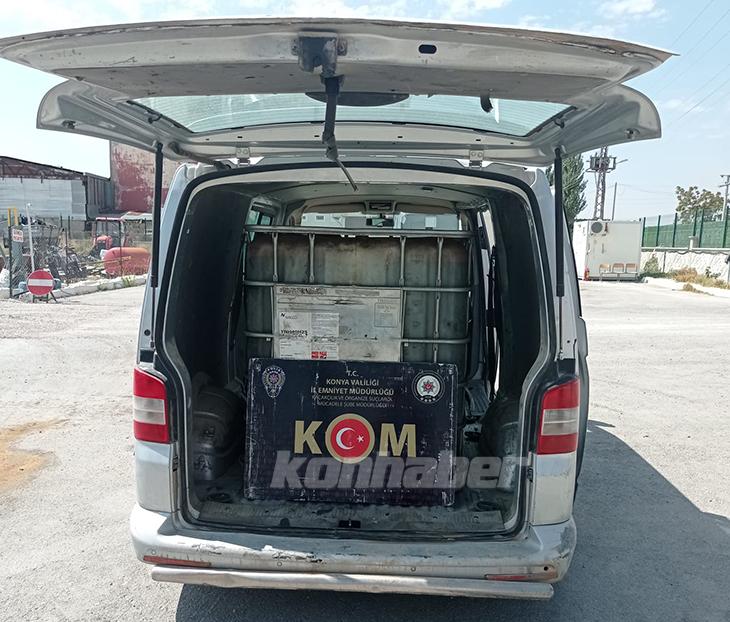 Konya'da uygulama noktasında şüphe üzerine durdurulan minibüste 2 bin 100 litre gümrük kaçağı akaryakıt ele geçirildi.