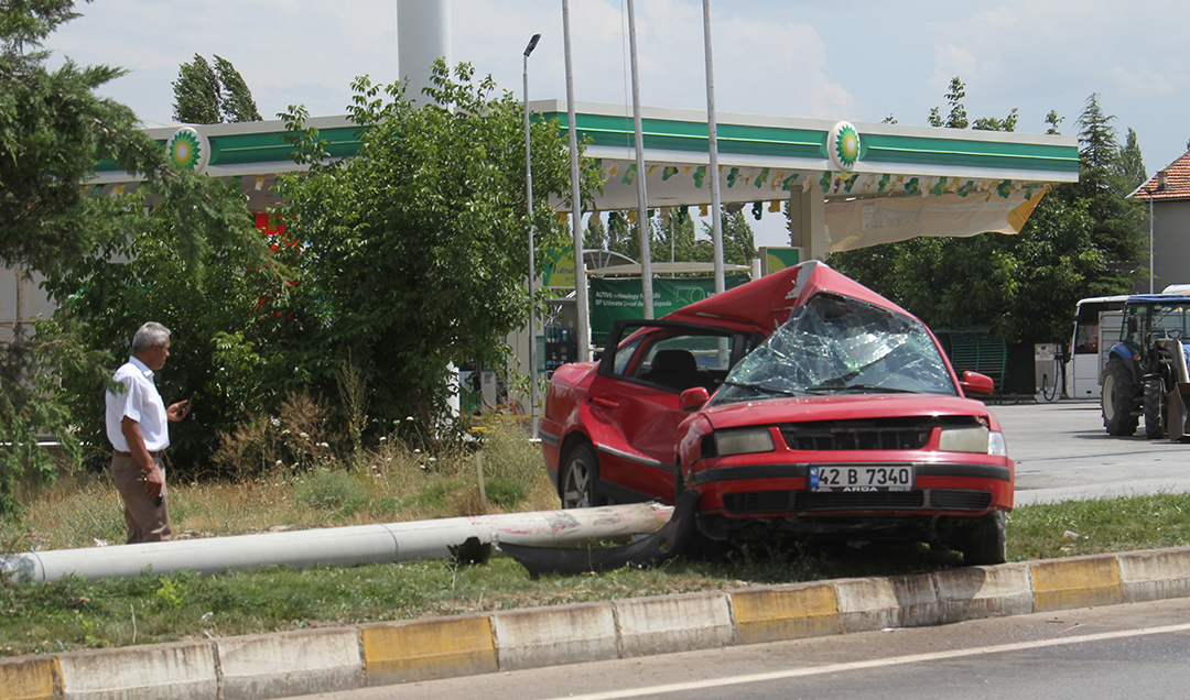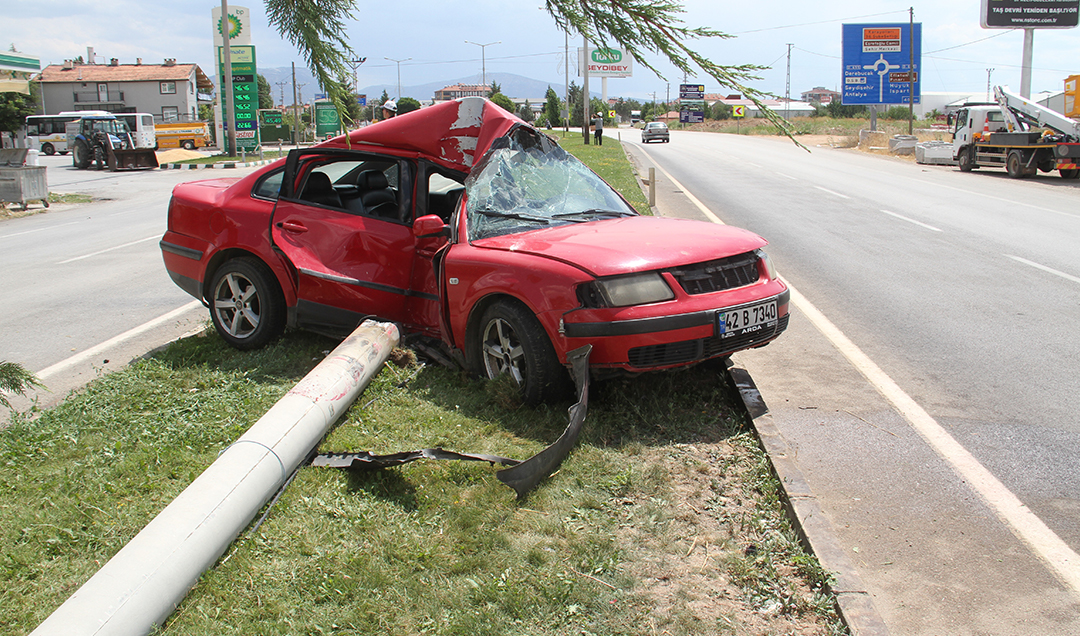 Nazmi Ö. yönetimindeki 42 B 7340 plakalı otomobil, kent merkezinden Konya yönüne doğru seyir halinde iken sürücüsünün direksiyon hakimiyetini kaybetmesi sonucu refüje çıkarak aydınlatma direğine çarptı.
