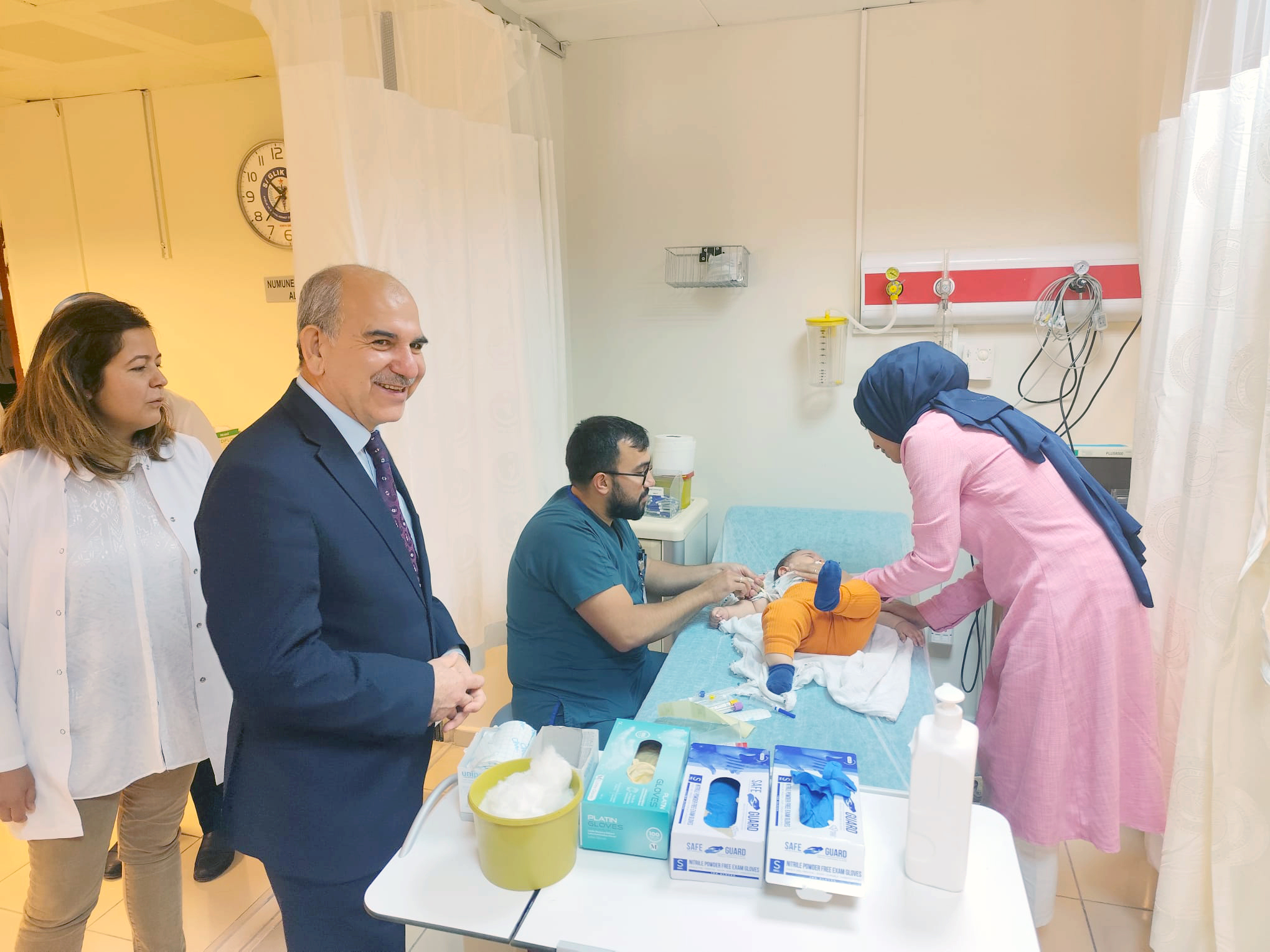 Hastane çocuk acil servisinden sağlık hizmeti alan hastaların yakınları ile sohbet ederek geçmiş olsun dileklerinde bulunan Prof. Dr. Koç, “Hastanemiz acil servisinde yapılan yeniliklerin vatandaşlarımızı mutlu ettiğini görmekten dolayı bizler de son derece memnunuz “diyerek yenilenen çocuk acil servisin hayırlı olmasını diledi.