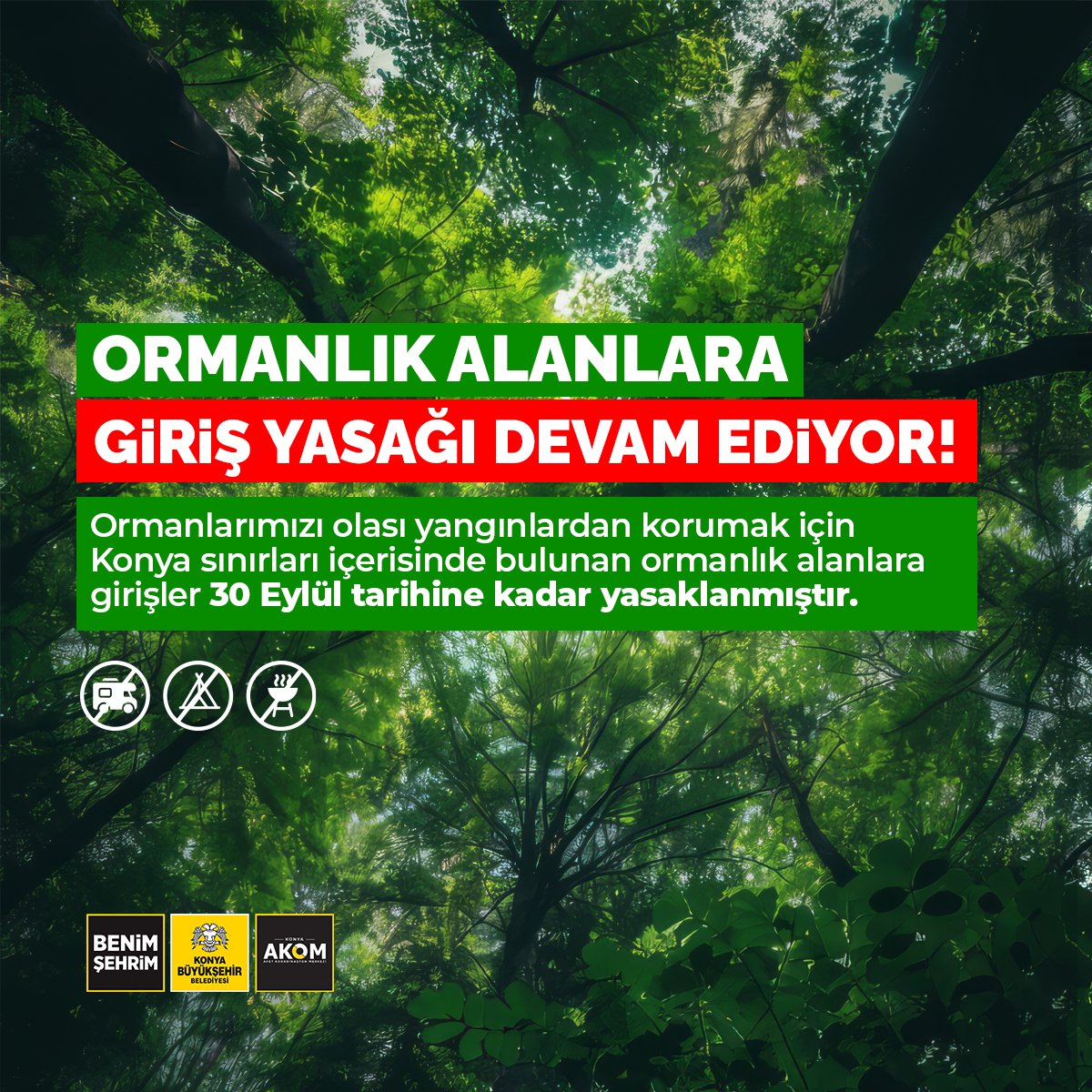 Konya’da yangın riski taşıyan ormanlara girişler 30 Eylül tarihine kadar yasaklandı. Son dönemde artan sıcaklıklar nedeniyle Konya genelinde Orman yangınlarının önlenmesine ilişkin tedbirler alındı. Alınan tedbirler kapsamında Konya Valiliği belirli ormanların girişini daha önce yasaklamıştı. Konya Büyükşehir Afet Koordinasyon Merkezi yeniden yaptığı paylaşımda, Konya il sınırları içerisinde bulunan ormanların 30 Eylül’e kadar yasaklandığını hatırlattı.