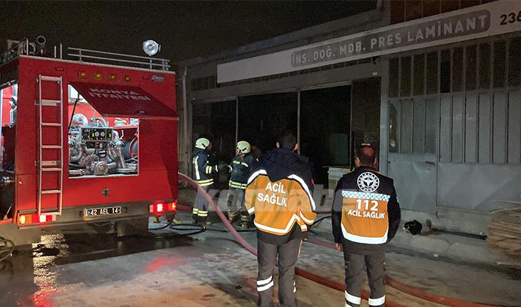 Yangın, saat 23.30 sıralarından Konya’nın Selçuklu İlçesi Horozluhan Mahallesi Yeşilköy sokakta Laminant üretimi yapılan bir işyerinde meydana geldi.