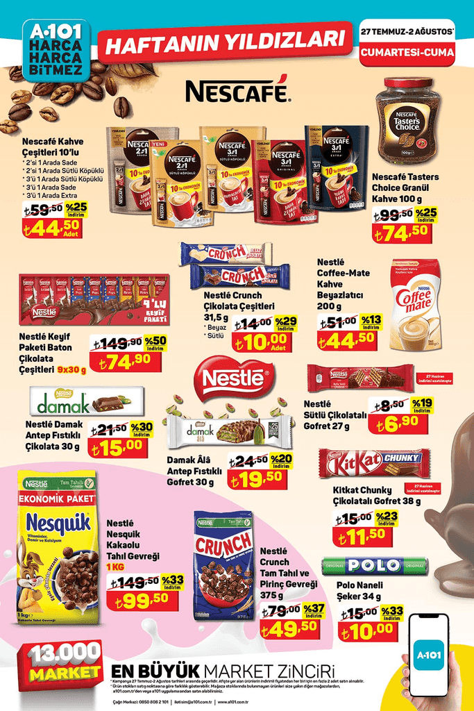 27 Temmuz – 2 Ağustos 2024 tarihleri arasında ki aktüel kataloğunu yayımlayarak indirimlerini başlatacağını duyurdu. Bu kapsamda, A101'de pek çok ürün indirimli olarak satışa sunulacak. Peki, A101'de hangi ürünler indirimde ve fiyatları ne kadar? İşte ayrıntılar...