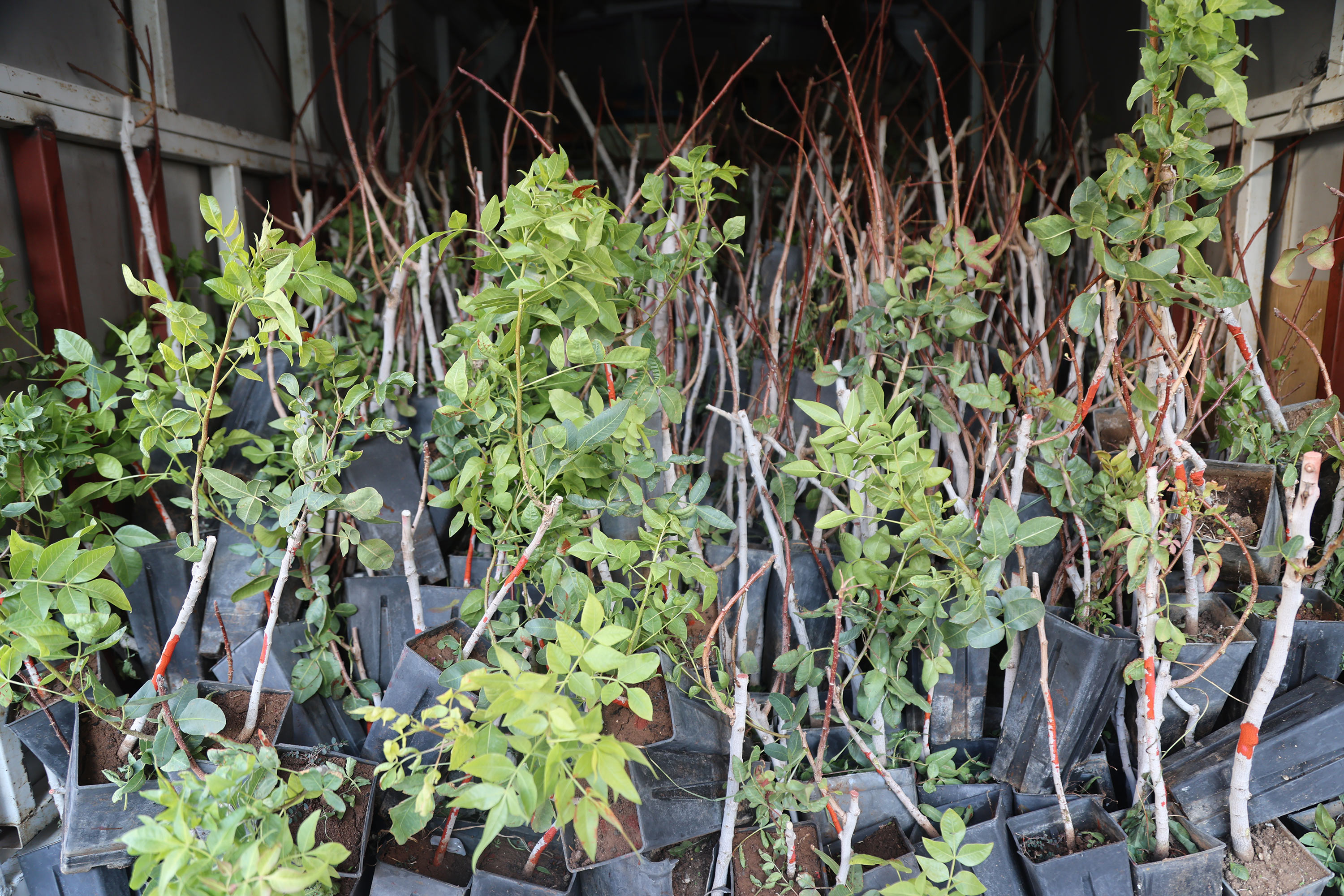 Aşılı tüplü fidanlarla bahçe tesisinin önem kazanmaya başladığı son yıllarda, yabani olarak yetişen menengiç ağaçlarının aşılanması ile Antep Fıstığı ağaçlarının yetiştiriciliği yapılabiliyor. (Yunus Köroğlu)