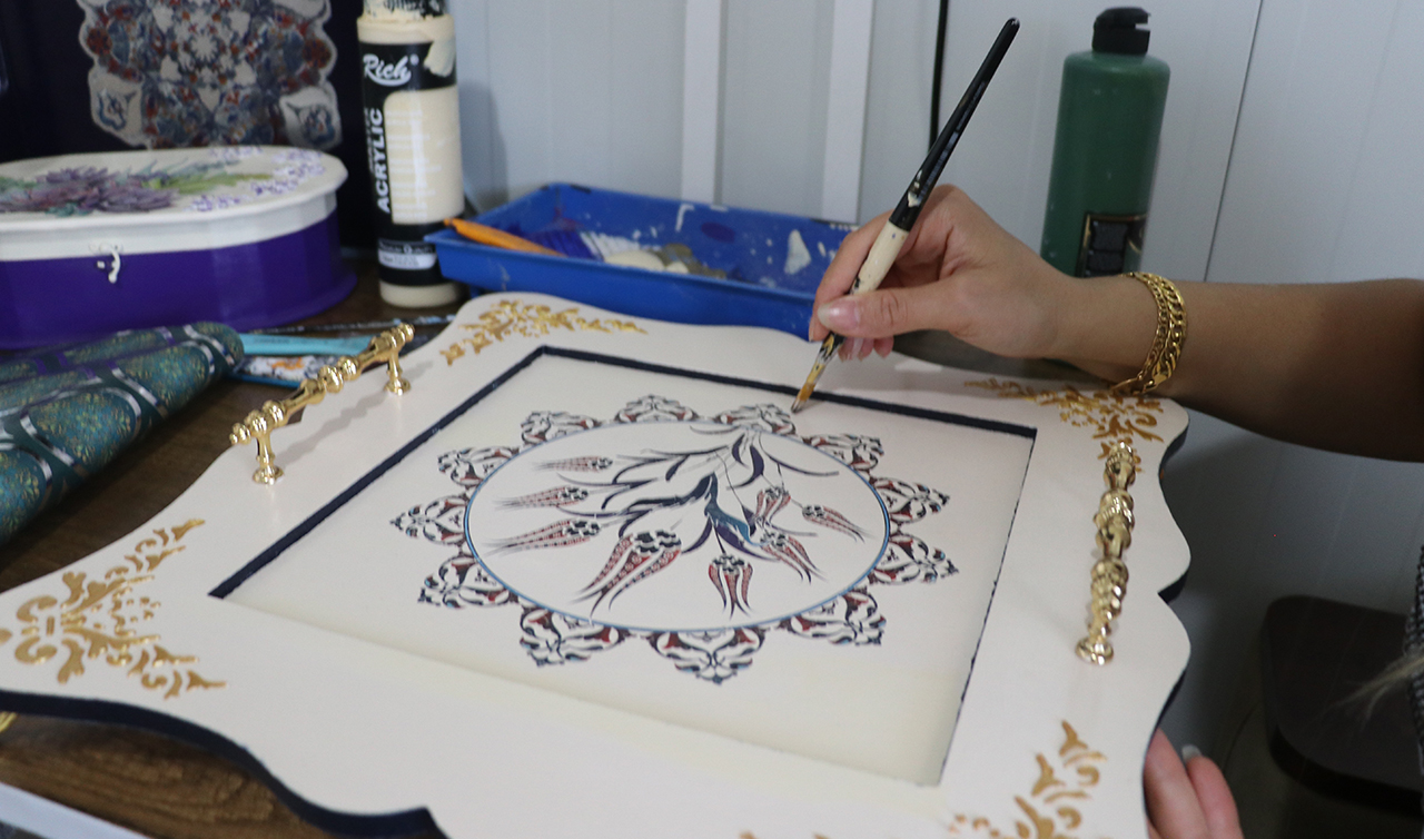 Kendi çalışmalarını yapmaya başlayan kadınlar, konteyner kentte renklendirdikleri ahşap tepsi, takı kutuları, sehpa gibi ürünleri satarak aile bütçesine katkıda bulunuyor.