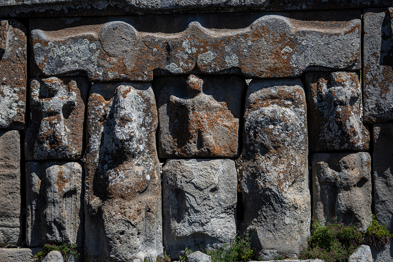 Anıtın merkezinde ilahi bir çift tasvir edilmektedir. Sol tarafta bir tahtta oturan erkek figürü, sağ tarafta ise kadın figürü yer almaktadır. Erkek figürü, muhtemelen bir Fırtına Tanrısı'nı temsil etmektedir, ancak kabartmada belirgin bir özellik bulunmamaktadır. Benzer şekilde, tipik bir Hitit polosu giyen kadın figürü ise büyük ihtimalle Hitit İmparatorluğu'nun resmi panteonunda Fırtına Tanrısı'nın kadın ortağı olarak bilinen Güneş Tanrıçası'nı temsil etmektedir.