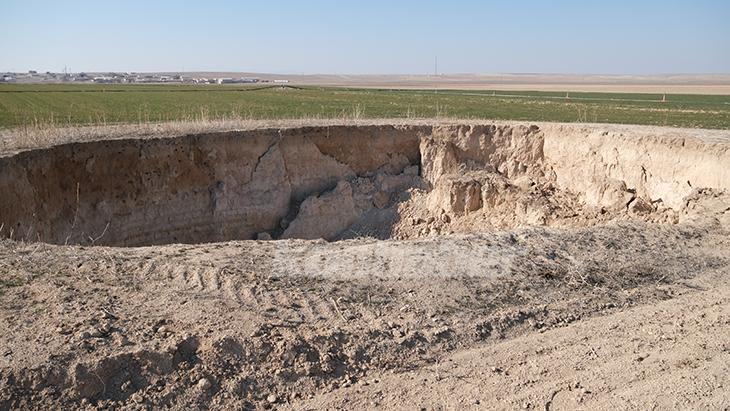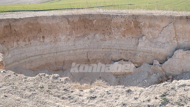 Karapınar ilçesinde tarla ve yerleşim yerlerinde de sıklıkla görülmeye başlanan obruklardan bazılarında yıllar içinde çökmeler devam ediyor.