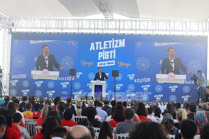 Her zaman Türk sporunun yanında olduklarını söyleyen Bakan Kurum, “Ülkemizde TOKİ Başkanlığımız eliyle toplam 19 stadyumun inşasını, Gençlik ve Spor Bakanlığımızla birlikte gerçekleştirdik. Ve şehrin merkezindeki bu çöküntü alanların, eski stadyumların yerine millet bahçeleri inşa ettik, inşa etmeye de devam ediyoruz. Aynısı Konya’daki eski stadyum alanında da vardı biz de bu 106 bin metrekarelik alanı Konya’mıza, gençlerimize kazandırıyoruz. Atletizm pistinin, yakın zamanda hizmete açılacak olimpik yüzme havuzunun spor camiası için, ülkemiz ve Konya’mız için hayırlı olmasını diliyorum.” diyerek konuşmasını tamamladı.
